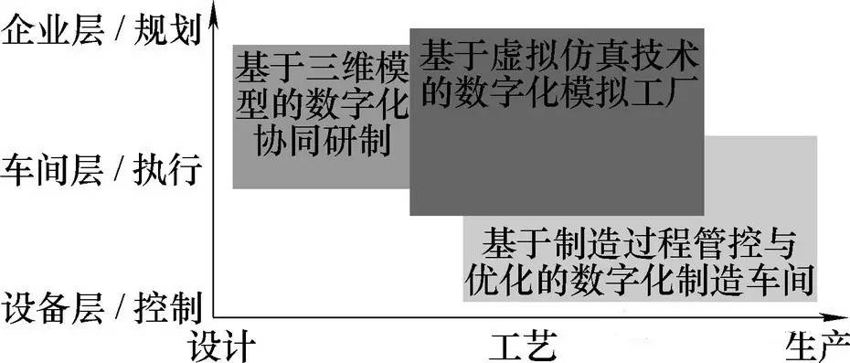 三維仿真技術(shù)即在汽車智能制造過程中充分利用三維仿真軟件進(jìn)行產(chǎn)品設(shè)計、生產(chǎn)制造以及數(shù)字化工廠系統(tǒng)集成。如圖1所示,三維軟件系統(tǒng)涵蓋了從產(chǎn)品開發(fā)到產(chǎn)品制造的整個過程,并在這個過程中發(fā)揮著重要的作用。三維仿真技術(shù)具體應(yīng)用可分下述三類。