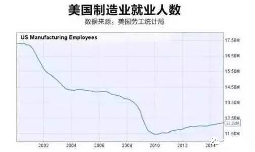 2000年以來,美國(guó)制造業(yè)就業(yè)人數(shù)總體呈下降趨勢(shì)。
