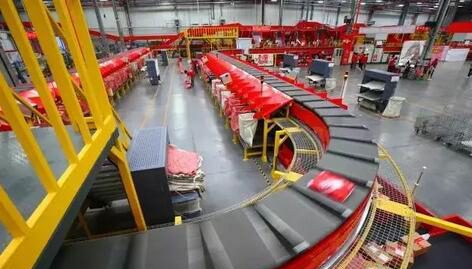 4、分揀道口:是已分揀商品脫離主輸送機進入集貨區(qū)域的通道,一般由鋼帶、皮帶、滾筒等組成滑道,使商品從主輸送裝置滑向集貨站臺,在那里由工作人員將該道口的所有商品集中后或是入庫儲存,或是組配裝車并進行配送作業(yè)。