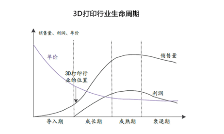 3D打印經(jīng)過(guò)了近 40 年的發(fā)展,龍頭公司開(kāi)始實(shí)現(xiàn)顯著盈利,市場(chǎng)認(rèn)可度快速上升,行業(yè)收入增長(zhǎng)加速。根據(jù)典型的產(chǎn)品生命周期理論,技術(shù)產(chǎn)品從導(dǎo)入期進(jìn)入成長(zhǎng)期的過(guò)程中往往表現(xiàn)出加速增長(zhǎng)的特征,判斷目前3D打印產(chǎn)業(yè)正在進(jìn)入加速成長(zhǎng)期。