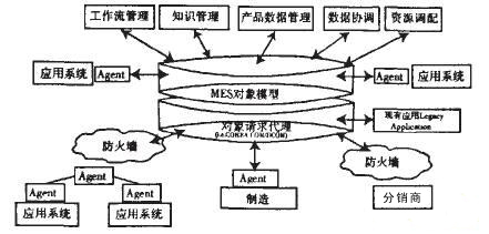 從模型中可看出,在面向?qū)ο蟮膽弥校總€對象都使用自身具有的功能和方法來操作數(shù)據(jù),分別完成系統(tǒng)的各種功能。而其它功能如:工作流管理,產(chǎn)品數(shù)據(jù)管理,知識管理等都從功能邏輯中分離出來。通過對象請求代理(ORB)(如CORBA,COM/DCOM)可使不同軟件商的對象相互交換信息和進行互操。NIIIP/SMART所描述的MES技術(shù)模型非常適合未來MES的商業(yè)應用特征,一個分布式對象框架可以讓各種數(shù)據(jù)和功能邏輯在使用時變得更加緊密。而且,通過使用小巧簡練的對象,可使系統(tǒng)模型在不破壞相互關(guān)系的情況下方便地進行客戶化定義。這些特征使實施的MES費用較低同時又具有良好的適應性和柔性。隨著計算機技術(shù)的發(fā)展,越來越多的MES、ERP、控制系統(tǒng)、產(chǎn)品數(shù)據(jù)管理、供應鏈管理和客戶關(guān)系管理都是以對象的方式來編寫代碼的。只要它們遵守統(tǒng)一的ORB,不管它們哪個開發(fā)商提供,都可以進行無縫地集成。現(xiàn)有的應用系統(tǒng)只要按正確的方法進行封裝也同樣能實現(xiàn)系統(tǒng)的即插即用。通過引入智能代理可以有效地實現(xiàn)分布式MES的協(xié)同工作,滿足虛擬企業(yè)中MES應用的要求。從而實現(xiàn)敏捷制造模式對信息系統(tǒng)的要求,即系統(tǒng)的可重構(gòu),可重用和可擴展特性。