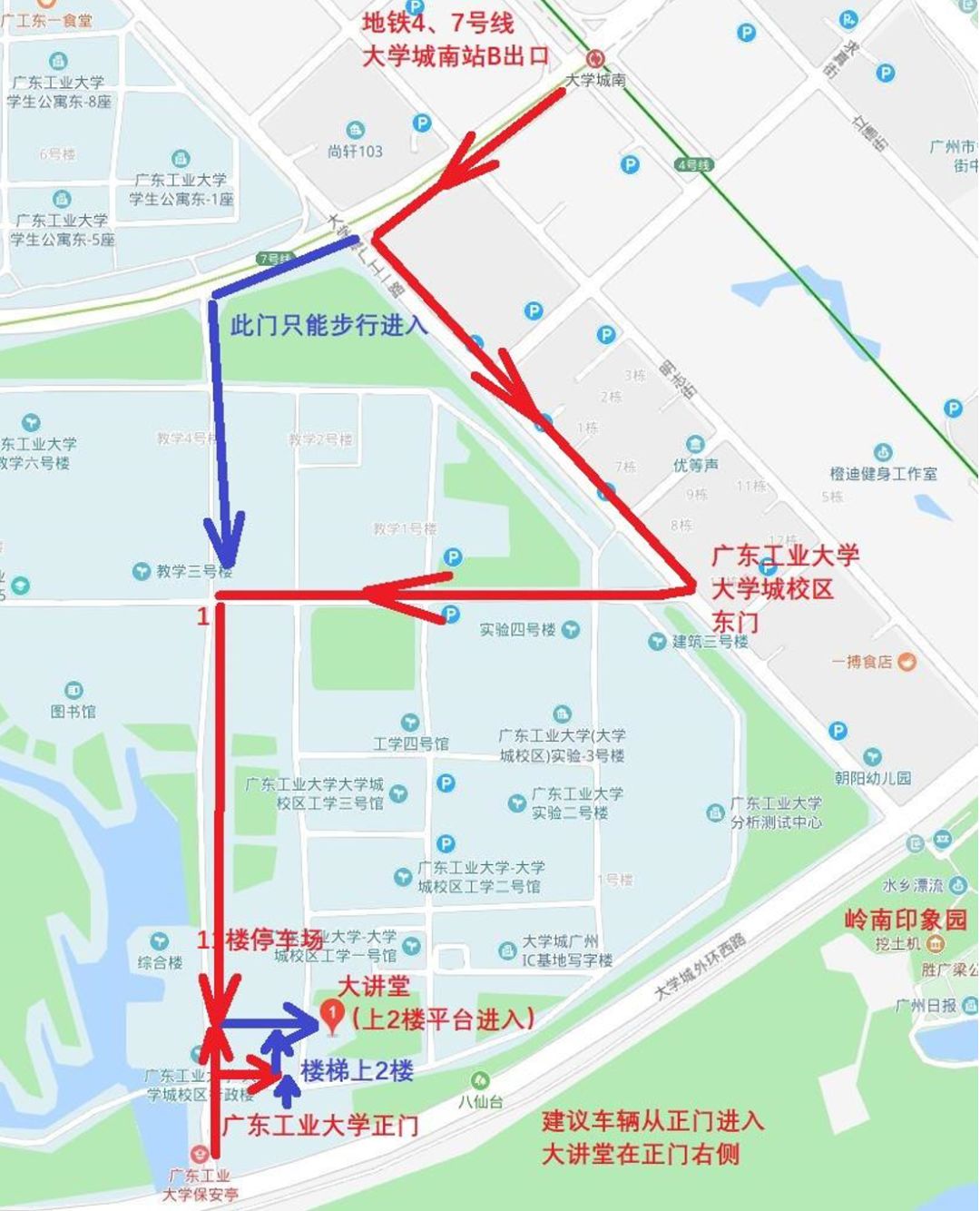 建議參會、參賽人員車輛從廣東工業(yè)大學(xué)(大學(xué)城校區(qū))正門進(jìn)入