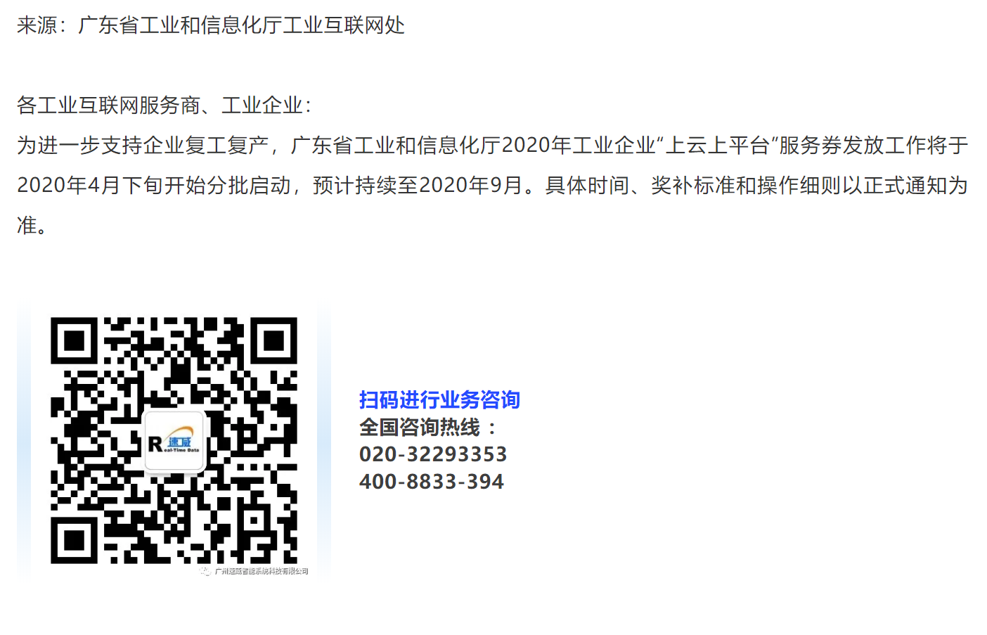 關(guān)于開展2020年工業(yè)企業(yè)“上云上平臺”服務(wù)券發(fā)放工作的預(yù)通知