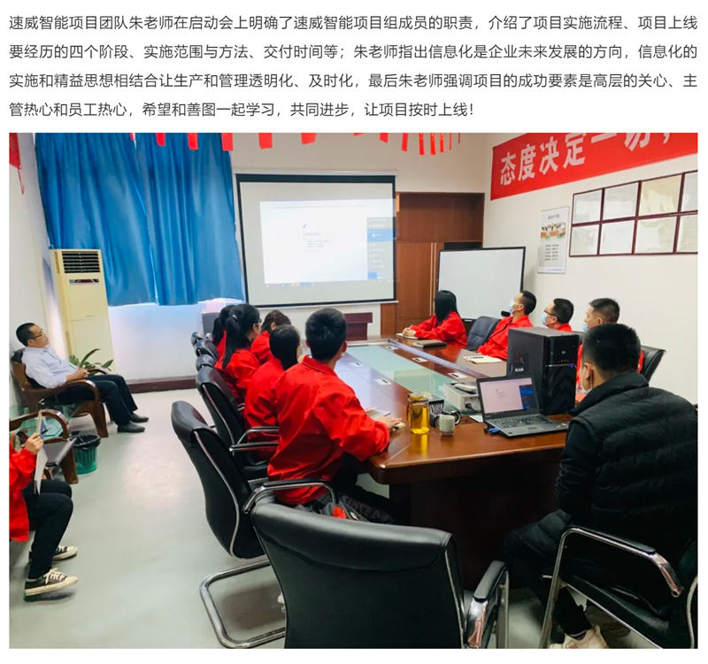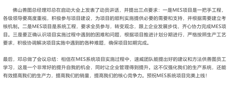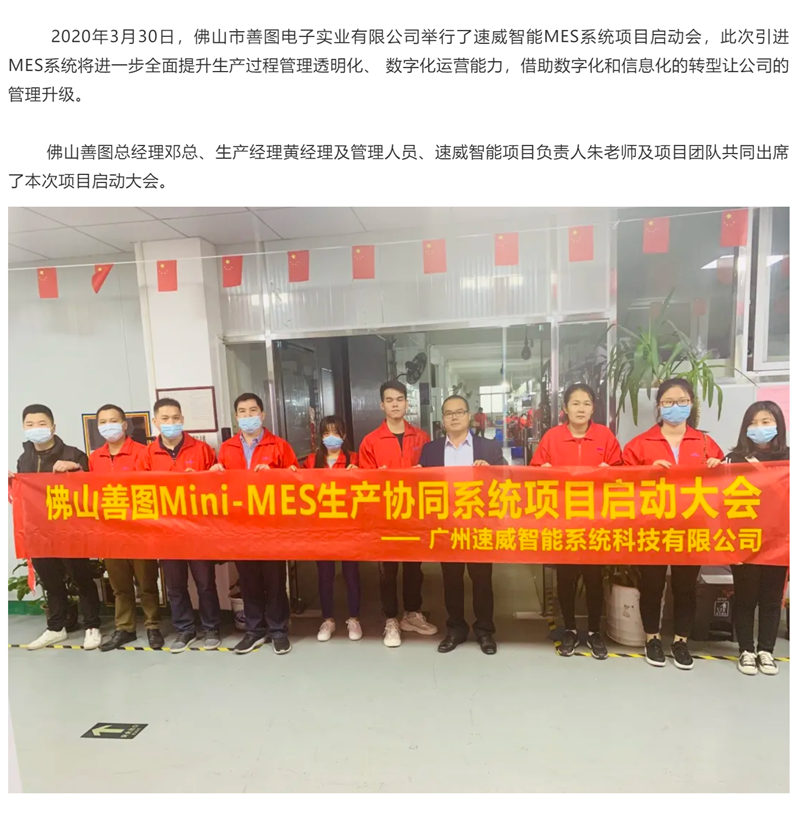 佛山市善圖電子實(shí)業(yè)有限公司成功召開(kāi)速威智能MES項(xiàng)目啟動(dòng)大會(huì)!