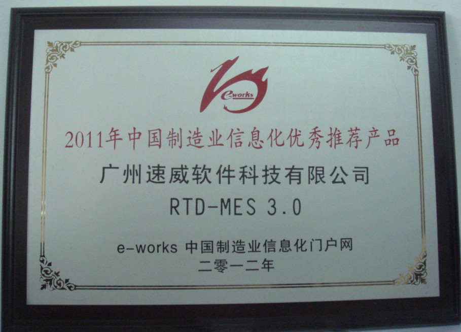 “2012中國(guó)工業(yè)與信息化融合發(fā)展高峰論壇”上,廣州速威獲得“2011年中國(guó)制造業(yè)信息化優(yōu)秀推薦產(chǎn)品”獎(jiǎng)項(xiàng)。廣州速威也將會(huì)一如既往地竭盡全力解決客戶需求,為客戶提供滿意服務(wù)。與客戶共創(chuàng)美好明天!