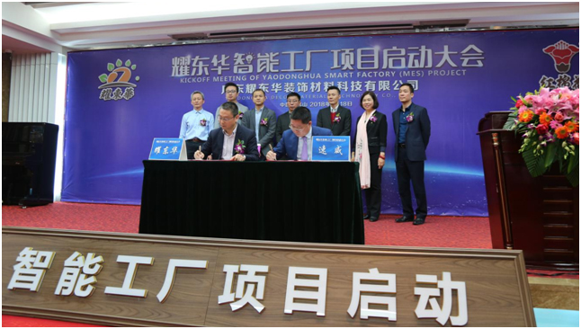 2018年1月18日,速威MES解決方案廣東耀東華智能工廠項目啟動大會在廣東佛山耀東華總部隆重舉行。中國領先的MES解決方案供應商廣州速威智能系統(tǒng)科技有限公司,攜手國家高新技術企業(yè)、廣東省林業(yè)龍頭企業(yè)耀東華公司,共同打造中國智造2025在林業(yè)產業(yè)、智裝行業(yè)、裝飾材料行業(yè)的標桿企業(yè)。